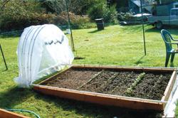 Harris builds his garden beds from 8-ft. long, 2 by 6-in. untreated fir. The main component of the hoop house is schedule 40 pvc pipe. The rails the house slides on are 3/4-in. diameter pipe. The hoops are 1/2 in. diameter. They fit into 1-in. diameter tees that glide over the rails.