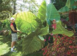 With just one plant, you can create a mini “jungle” in your garden or backyard. Up to 9 ft. tall with leaves as wide as 5 ft., Thailand Giant Elephant Ear plants can be found in many catalogs, on websites and in nurseries. Hardy in Zones 8 to 10, they survive over winter in the warmest regions, but ambitious gardeners in colder climates can dig the plant’s tubers in the fall to plant again the following spring. Some growers plant them in pots so they can bring the whole thing inside during the winter.