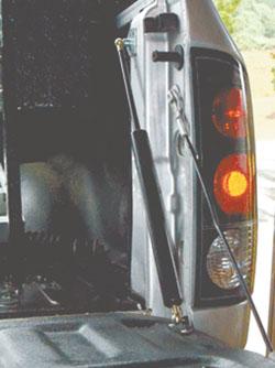 The employee of Geno’s Garage, a Dodge/Cummins parts distributor in Georgia, calibrated the gas spring to work on Dodge pickups (1994 to 2013). The $100 GateGlide II comes with directions where to drill two small holes in the tailgate and install mounting clamps on the truck bed’s sidewall lip.