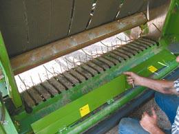He says that leaves can add as much as an extra 100 lbs./bale harvested under some conditions and greatly add to the relative feed value since leaves have much higher protein levels than stems. That means a fast payback on the $200 the Laceys charge for the two metal plates of the Leaf Saver that mount easily within an hour.