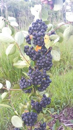 Pertzborn planted his shrubs in a field that had been in grass/wildflowers for 5 years. He used landscape fabric covered by woodchips to prevent weed competition and harvested berries in the third year. Mechanical harvesters similar to blueberry pickers are used to pick the ripe fruit in mid-August to mid-September.