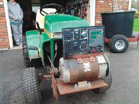 "I had a 7,500-watt 240/120 30-amp generator sitting around unused. So I mounted it to the snowplow mounts on a Deere 210 garden tractor,"says Carmin Mazzucco, Northford, Conn.