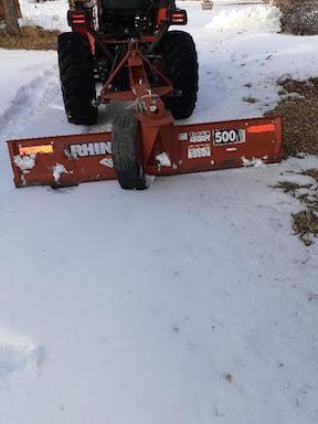 “I slid an old tire onto the end of my rear snow blade. Keeps it from digging in and just works great. If the blade gets overloaded, I just lift it to dump the snow and then back up to push it out of the way. The tire helps when backing up, too,” says Edes.
