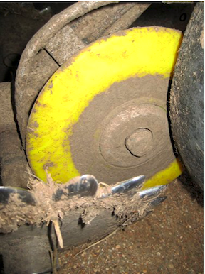 The urethane wheel ring also stays cleaner and stays down in the bottom of the furrow better. In dry or slightly hard soil, the hard plastic of the DuraLok presses the seed into the soil better than softer tires do.