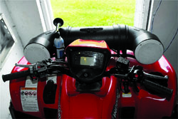 The system is made from simple materials including 6-in. sewer pipe, a small 240-watt amplifier, and 2 waterproof marine speakers. It's strapped with bungee cords to the ATV's front carrier rack and is entirely waterproof, thanks to glue and silicone sealant in the joints. Belanger simply plugs his iPod into the front of the speaker system and then stores it in a waterproof compartment in his Suzuki Kingquad 4x4 750 Axi.