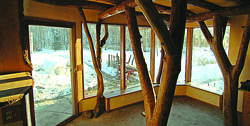 Ronald Gundersen and his company, Whole Trees Architecture, uses whole trees for everything from structural components to interior decorating, including stairs, railings and exposed columns.