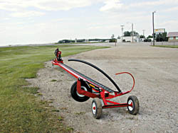 The CRP Clipper is patterned after a push-type front-mounted clipper Faul once owned. After making a number of improvements, including the hydraulic drive, his unit now comes in front and rear 3-point hitch mounts. When rear-mounted, it can easily be towed behind the tractor or a pickup with a receiver hitch for road transport.