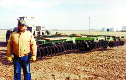 He replaced the original 22-in. dia. disk blades with 20-in. dia., 1 1/4-in. wavy coulters. He also added about 3,200 lbs. of weights to help the ripple coulters cut better.