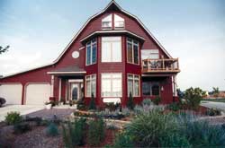 Most of the family living space is on the second floor, where they added windows and skylights that allow sunlight to penetrate nearly every corner. A two story pentagonal addition at the front of the barn, with the look of a short silo, gives the house a focal point away from the roof peak and added plenty of space for windows.