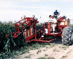 The one-row, self-propelled machine that the Elliotts and Schottman came up with can harvest 80 to 90 dozen ears in only about six minutes.