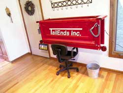 "It looks just like the real thing, right down to the hooks and chains that secure the tailgate," says Ken Laughlin. "It comes fully assembled -- all you do is add the tail lights and any options. All the material we use is UV protected so you can use the desk indoors or outdoors."
