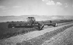 Commercial hay producers Eric and Sue Tuft, Monroe, Utah, devised a system for cutting and windrowing their alfalfa crop that saves at least two trips across the field and has drastically trimmed their fuel use.