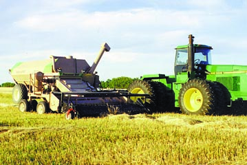 FARM SHOW first reported two years ago on a revolutionary new harvest system that eliminates the need for a conventional combine (Vol. 20, No. 6). Since that time, inventor Bob McLeod has made great strides in developing the first-of-its-kind system. It features a tractor-mounted harvester that brings "dirty" grain to a stationary grain-cleaning mill back at the farm. "It's the first serious alternative in 100 years to the combine. Interest in this concept is growing by leaps and bounds," says McLeod, who has been conducting rigorous field tests over the past couple years to refine the system. McLeod has already received five patents on the system and has several others in the process. He has a mailing list of hundreds of farmers all over the world who have expressed interest in his idea and two combine manufacturers have proposed joint ventures. McLeod's idea is to use two machines instead of a single combine. The "harvester" mounts on an existing tractor. It uses a rotary system to separate grain, chaff, and weed seeds from the straw, which is left in the field. The partially threshed grain falls through the concaves and is then augered through an airlock to a pneumatic tube that blows it into a grain tank. The harvester can be fitted with either a direct cut or pickup-type header. It features a large 1,200 bu. grain box compared to the 250 to 300 bu. hoppers on most existing combines. The second machine is an on-farm mill that can be located back at the grain storage area. It mounts on a 7 by 24-ft. trailer. Powered by a 30 hp. electric motor it handles 800 bu. per hour, separating grain from the crop material gathered in the field. It cleans the crop to export standards using new air cleaning technology. It uses a roller mill to crush and compress the collected chaff and weed seeds as "savings" for use as livestock feed, litter, or for disposal. "The economics of the system are really startling," says McLeod. He figures an average-size farm operation will save thousands of dollars a year in operating costs, not counting the lower initial investment. "For example, there's virtually no grain loss out the back of the harvester in the field so we harvest more grain and eliminate volunteer crops the following season. Also, the value of taking weeds seeds off averages about per acre savings in herbicide and tillage expenses. The chaff, weed seeds, and other crop residue that accumulate as the grain is cleaned has a nutrient value per ton. In addition, we're delivering grain cleaned to export standards so there's no dockage." Developing the new harvest system has been a big job, says McLeod. He has taken on a couple of investors but doesn't want to sell out to a major manufacturer for fear the system would never get on the market. At this time, he's hoping to make his first sales of machines in the year 2000. "We estimate the cost of the complete harvesting system will be 25 percent less than a conventional combine," says McLeod.
