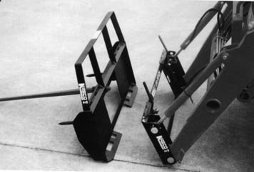"Our new quick-tach hitch lets you quickly mount attachments designed for skid steer loaders onto loader tractors, such as bale spears, buckets, or pallet forks," says Phil Kaster, Kasco Mfg., Shelbyville, Ind. The hitch consists of two parts. One part pins onto the loader mounting brackets and is equipped with a flat steel bar across the top and steel pins on each side. The other part pins onto the attachment. To mount an attachment, you raise the loader until the flat bar slides under a bracket on the attachment-mounted hitch. Then, rotate a pair of levers that pop the pins through brackets at the bottom of the hitch. "It duplicates the hitch commonly used on skid steer loaders so that you can use steer loader attachments on any small loader tractor," says Kaster. "Generally, skid steer loader attachments are less expensive than loader attachments." Fits most smaller loader tractors. The company also makes an adapter hitch that lets you mount modern skid steer attachments on older model skid steer loaders. The hitch hooks onto two steel prongs at the bottom of the skid steer mounting system. To hook up the attachment you drive the skid steer up to it and raise the loader arms, then manually rotate two levers that are already on the loader arms. "By removing our uni-hitch you can still use your old attachments," notes Kaster, who notes that the system fits older Case, Gehl, Deere, Mustang, and New Holland skid steer loaders.