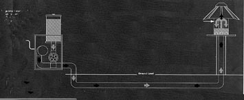 The feeder can be located up to 300 ft. from the house. A 1 1/4-in. dia. plastic pipe is buried a few inches below ground. It carries any type of seed to the company's platform-type cedar feeder.