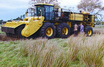 Chewing big tree stumps down to nothing in seconds flat is a breeze for this giant self-propelled land-clearing machine built in New Zealand.