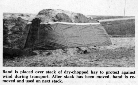 Here, according to Hanson, is how the system has stacked up in research trials: "Field tests conducted at Lamed, Kan., by Kansas State University researchers on July 22 last year, showed the Hanson Stacker to be 16.7% more efficient than the Hesston under field conditions prevailing that day, and 2.4% more efficient than the New Holland self-propelled baler. The reason we save more hay than loose starkers is that we have no screen in our machine to blow the fines through. And, by adjusting the wind on your chopper, you can use just enough air to fill the stacker with minimal loss. It takes a lot less wind to move chopped hay than loose hay. With hay presently selling for more money per pound than milo, this is important."