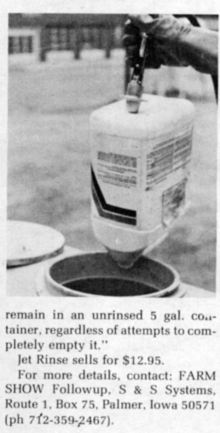 "You'll more than pay for it in one season," says Larry Siefken, president of S & S Systems, Palmer, Iowa, manufacturer of the new Jet Rinse.