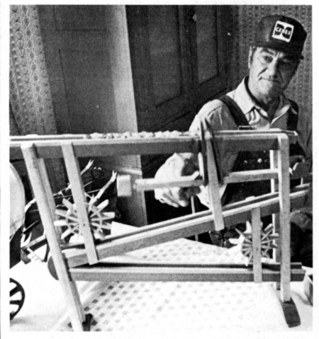 Alex Snaza, Webster, took on the toy making hobby a few years ago when he retired from active farming. He makes a wide variety of wooden toys, most of them of his own design. An exception is the popular marble dropping machine.