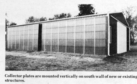 Hufford notes that the collector wall has a layer of insulation on the inside. Then, there's a prepainted black collector plate (made of metal siding) suspended between the insulation and the translucent fiberglass cover on the outside.