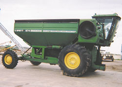 Positioning of the cab worked out great as well. Because the auger extends out ahead of the cab, the operator doesn't have to turn around to watch when unloading. The hydrostatic drive makes it easy to match speed with a combine when it's unloading on the go.