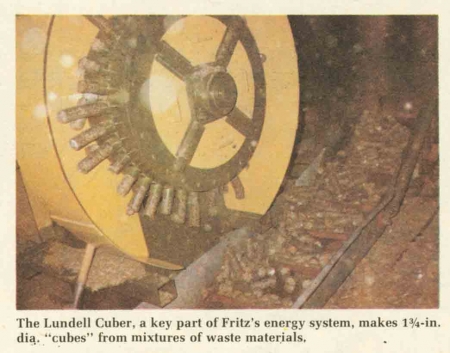 Bill Fritz, of Columbus, who sold his interest in Middle State Manufacturing last summer -- a firm he founded in 1963 -- has already sold several of his new on-farm energy packages which produce "cube fuel" from combinations of cornstalks, wheat straw, waste cardboard and other material which can then be handled by automated stokers. There are a variety of furnaces available, some of which Fritz designed himself.