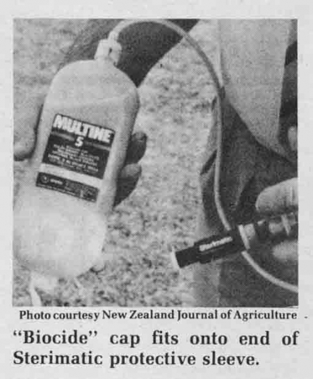 The "Sterimatic" hypodermic sterilizer is already available in the U.K., Australia and New Zealand and users report big reductions in abscesses caused by infection that can reduce carcass grades, or even cause rejection of animals in certain markets.