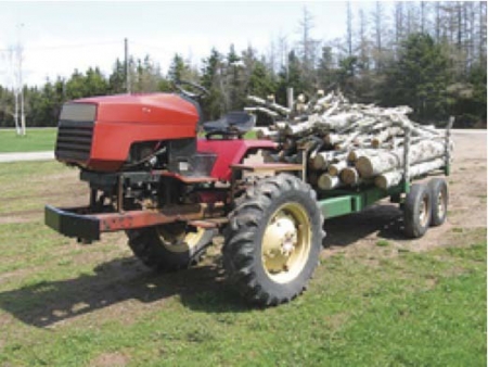 The tractor is hydraulically-steered and small enough to maneuver in the woods, yet tough enough to haul big loads such as a 1 1/4 cords of wood. "It's working slick," Gallant says. "It was quite simple in the end."