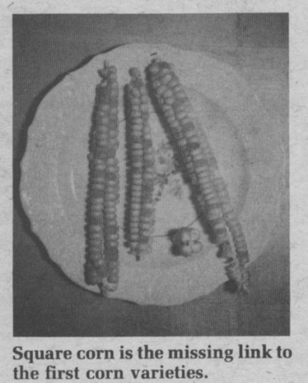 The researcher, who has grown more than 30,000 different corn varieties and crosses during his career, says the square ear was a cross between an ancient variety of wild grass corn called "teosinte" and a "Golden Bantam" variety. That cross yielded a genetic variety dating back thousands of years and provided a stepping stone to more modern varieties. The square ears have just 4 rows of kernels and a very small cob, which results in its square shape. The kernels are full-size and, according to those who've tried it, surprisingly tasty.